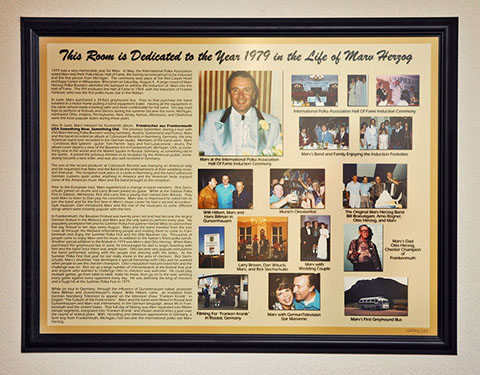 In 2007, the Marv Herzog Hotel opened. Each of the 38 guest rooms highlight a special year in Marv’s life, complete with a narrative and pictures. The hotel gift shop has all 33 of Marv’s recordings available and the lobby features a museum of Marv’s memorabilia.
